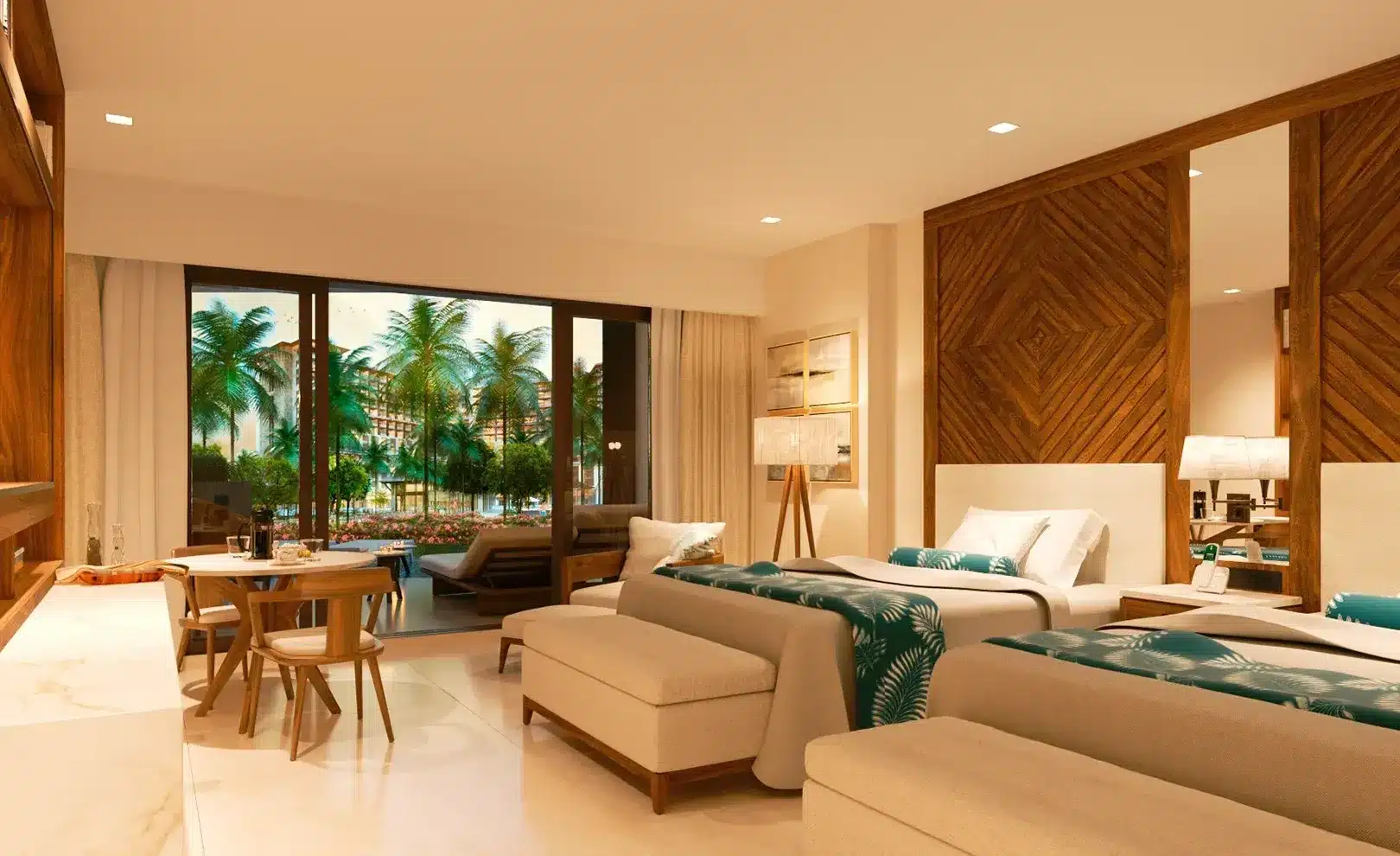 Experience spacious, contemporary suites crafted with comfort and style in mind. Many offer ocean views, while others overlook the lush gardens, sparkling pools or golf course. Expect premium bedding, sleek bathrooms, whirlpool tubs, smart TVs, a daily refreshed minibar and 24-hour room service — all included as part of your stay.
